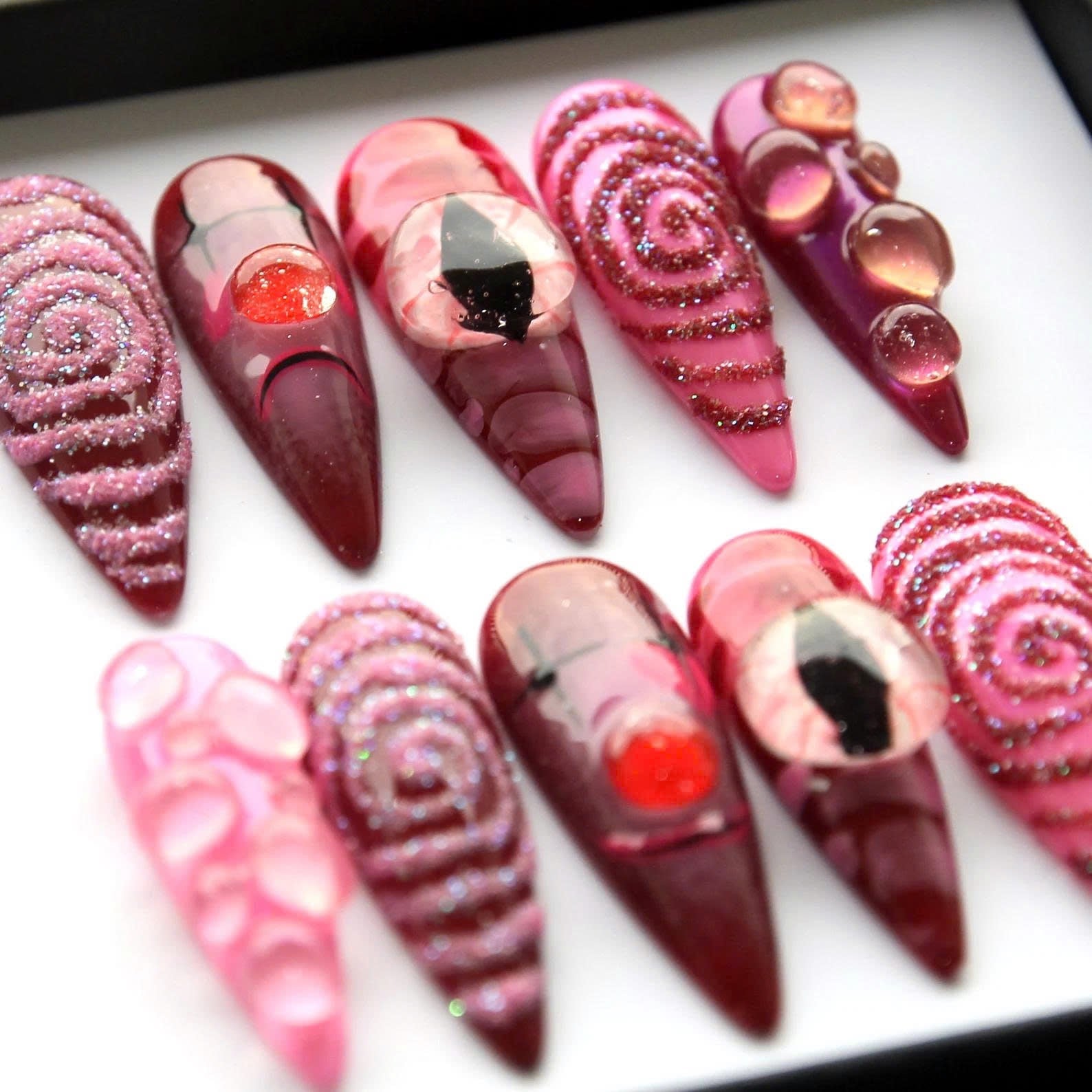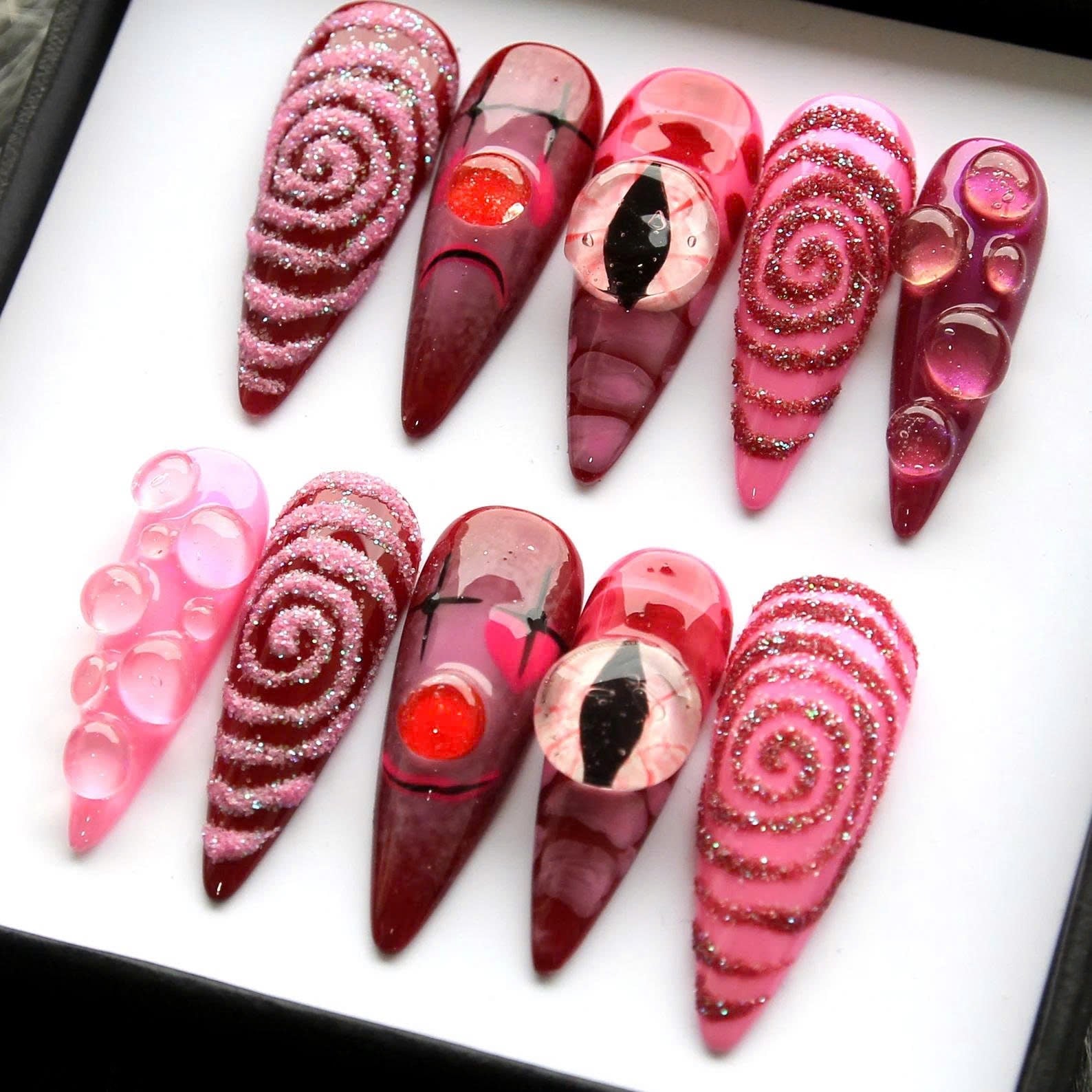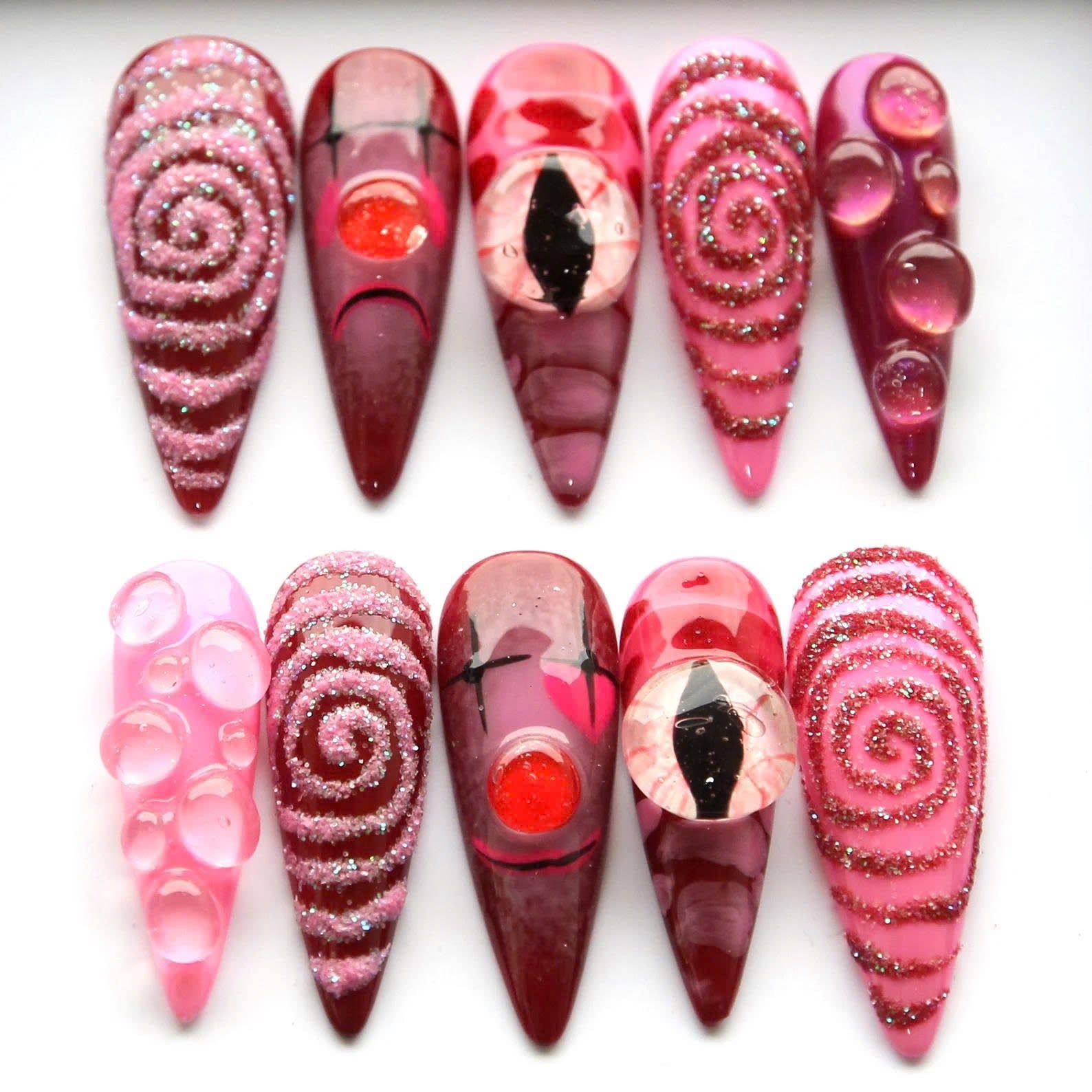 An expressive nail design featuring a mystical crying clown, blending eerie charm with dramatic beauty